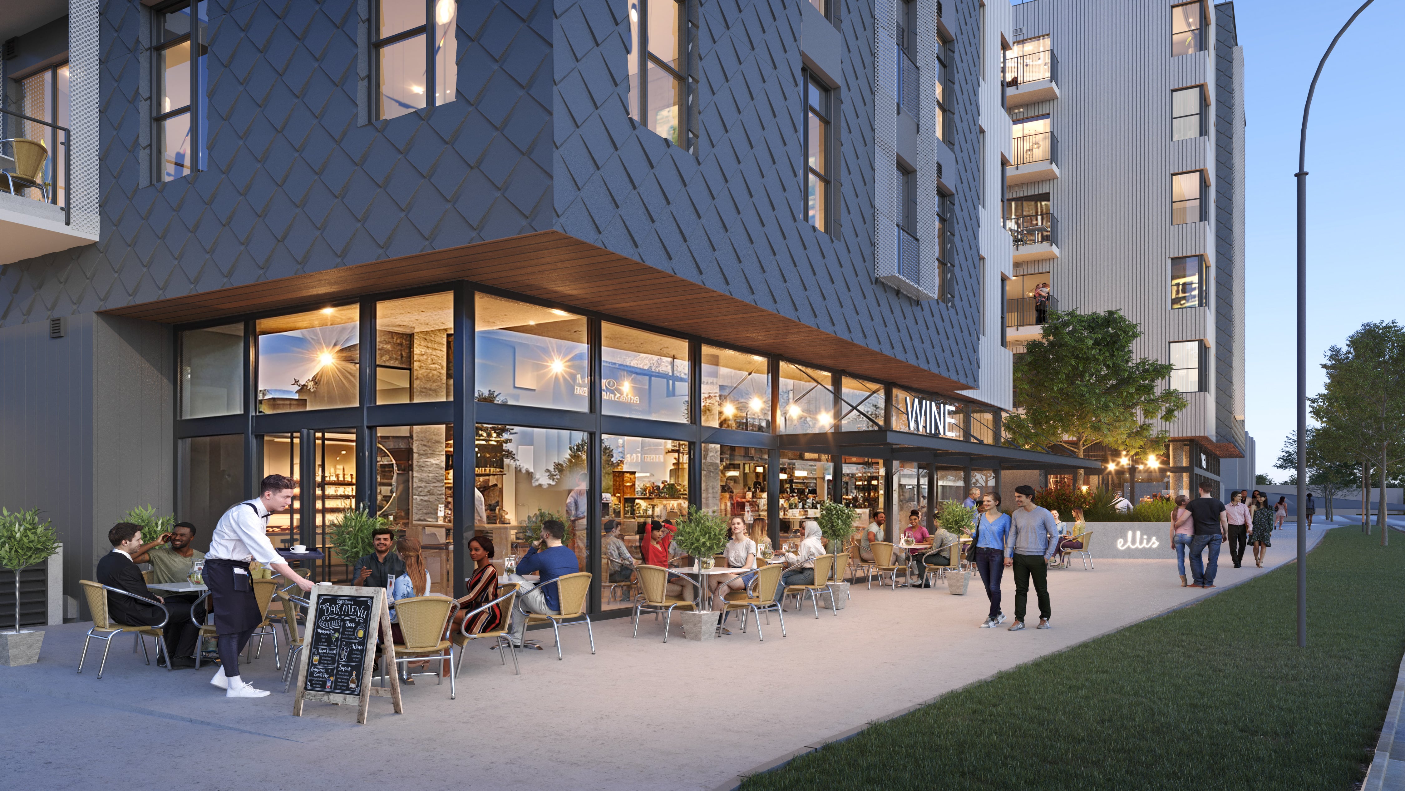 Set for completion in August 2026, Ellis will add a modern, community-focused presence to this high-traffic corridor. Contemporary architecture, abundant natural light, and high ceilings create bright, livable homes while enhancing the pedestrian streetscape. Blending residential, retail, and live-work spaces, Ellis is designed to strengthen the growing Vic West neighborhood.
